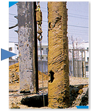市街地再開発におけるビルの建設のためには、古い建築物の撤去作業の後、既存の杭を引き抜くという状況が生じます。その際、杭引き抜き作業の騒音等が周辺に多大な影響を及ぼす事が考えられます。特に、コンピューターの導入等近年のオフィスオートメーション化は、この様な工事の震動には弱く、その作業を実施するに当たっては、関係各方面から無震動、無騒音が強く要求されています。